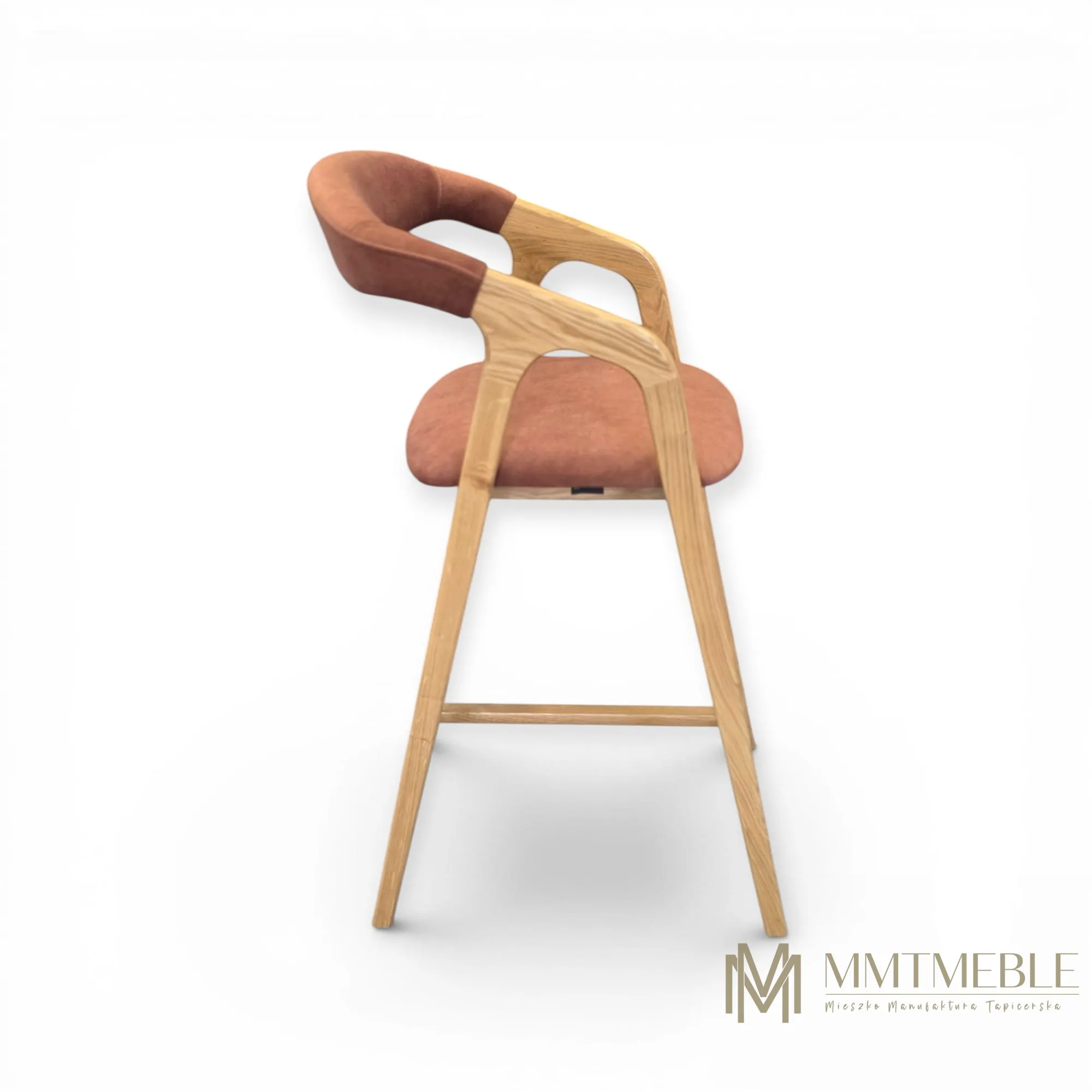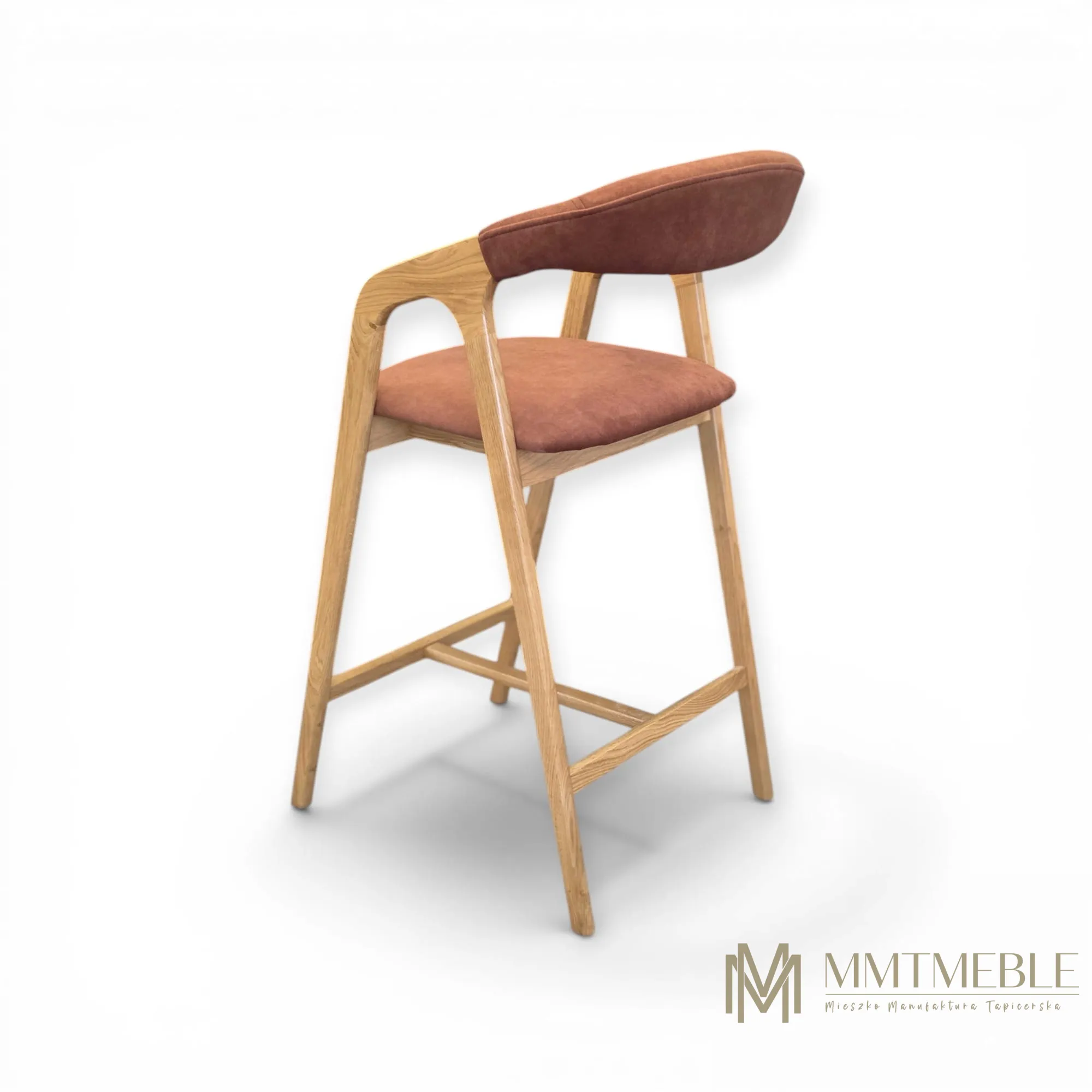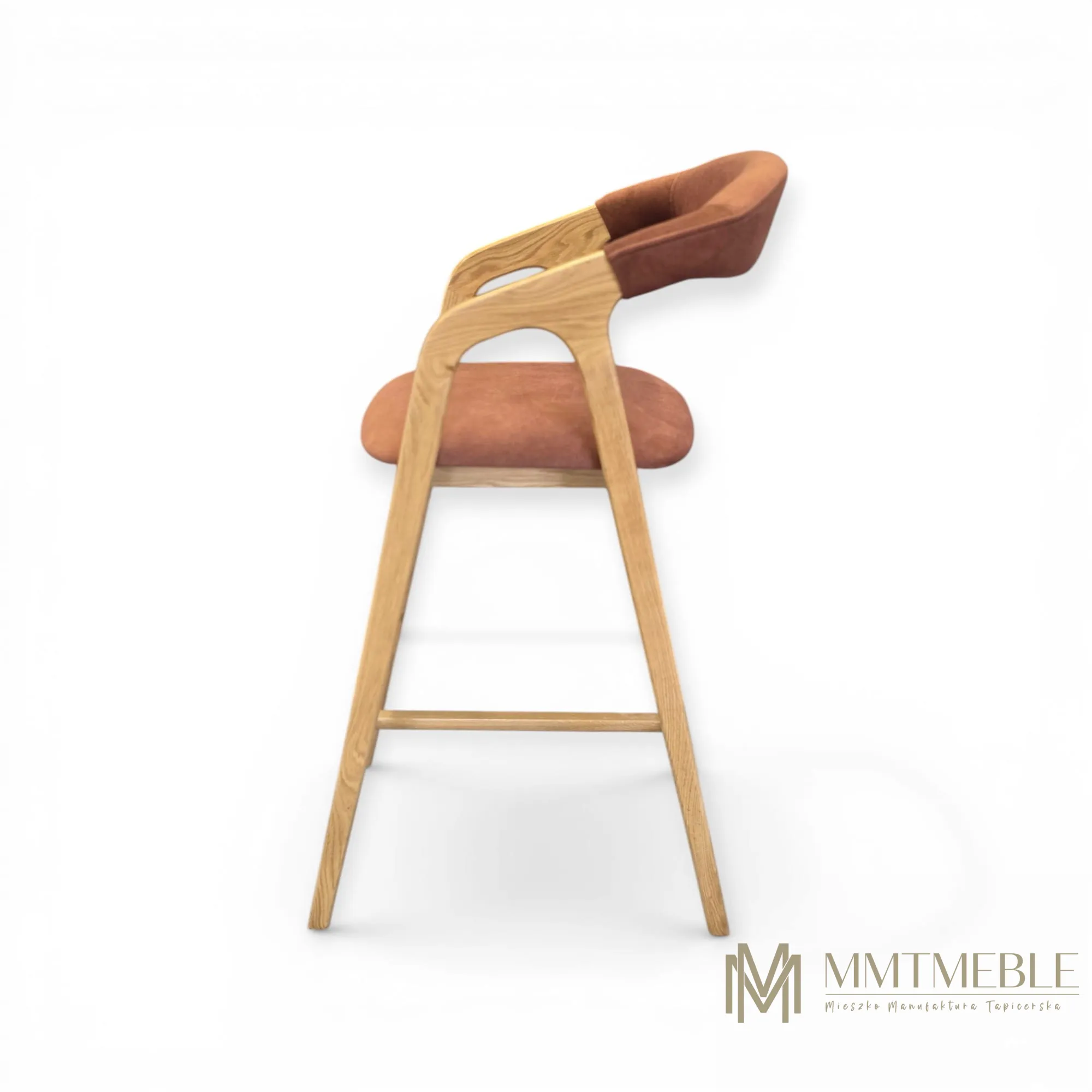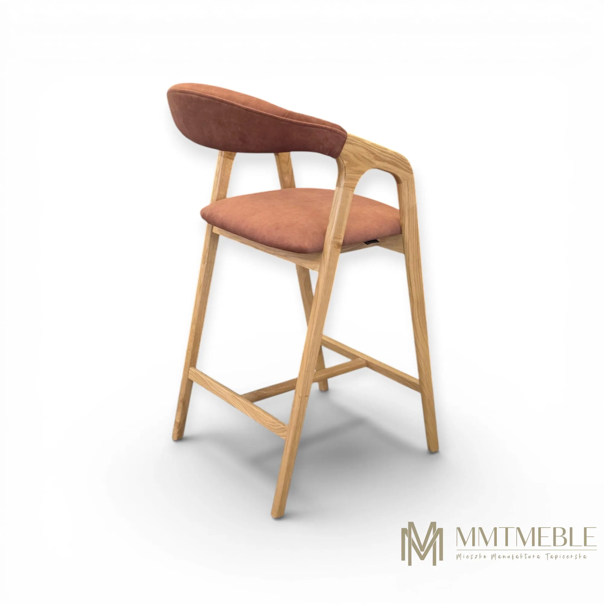 Elegancki hoker Vera to połączenie naturalnego drewna dębowego i komfortowej tapicerki. Idealny do wyspy kuchennej lub baru – wygodny, stabilny i wykonywany na indywidualne zamówienie.