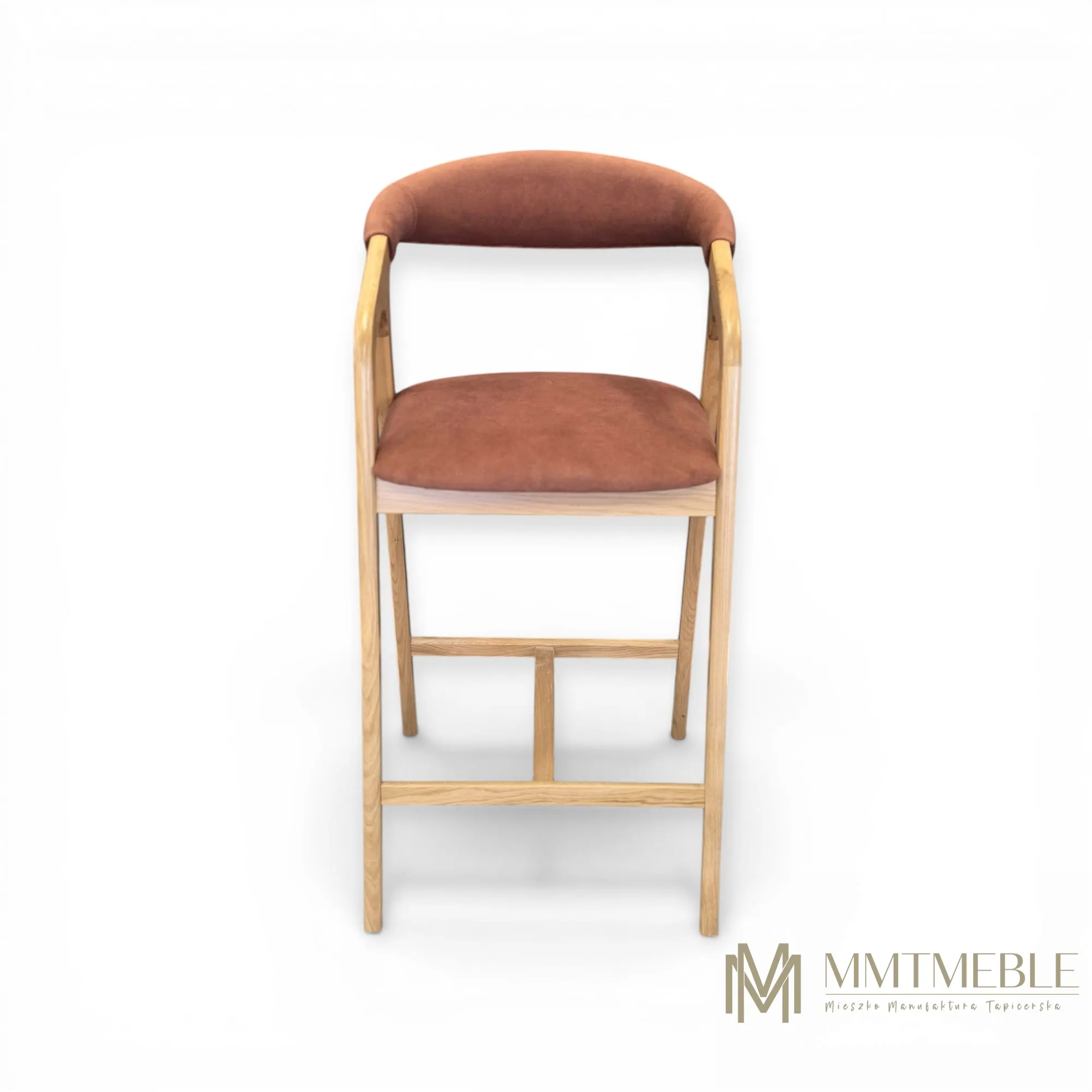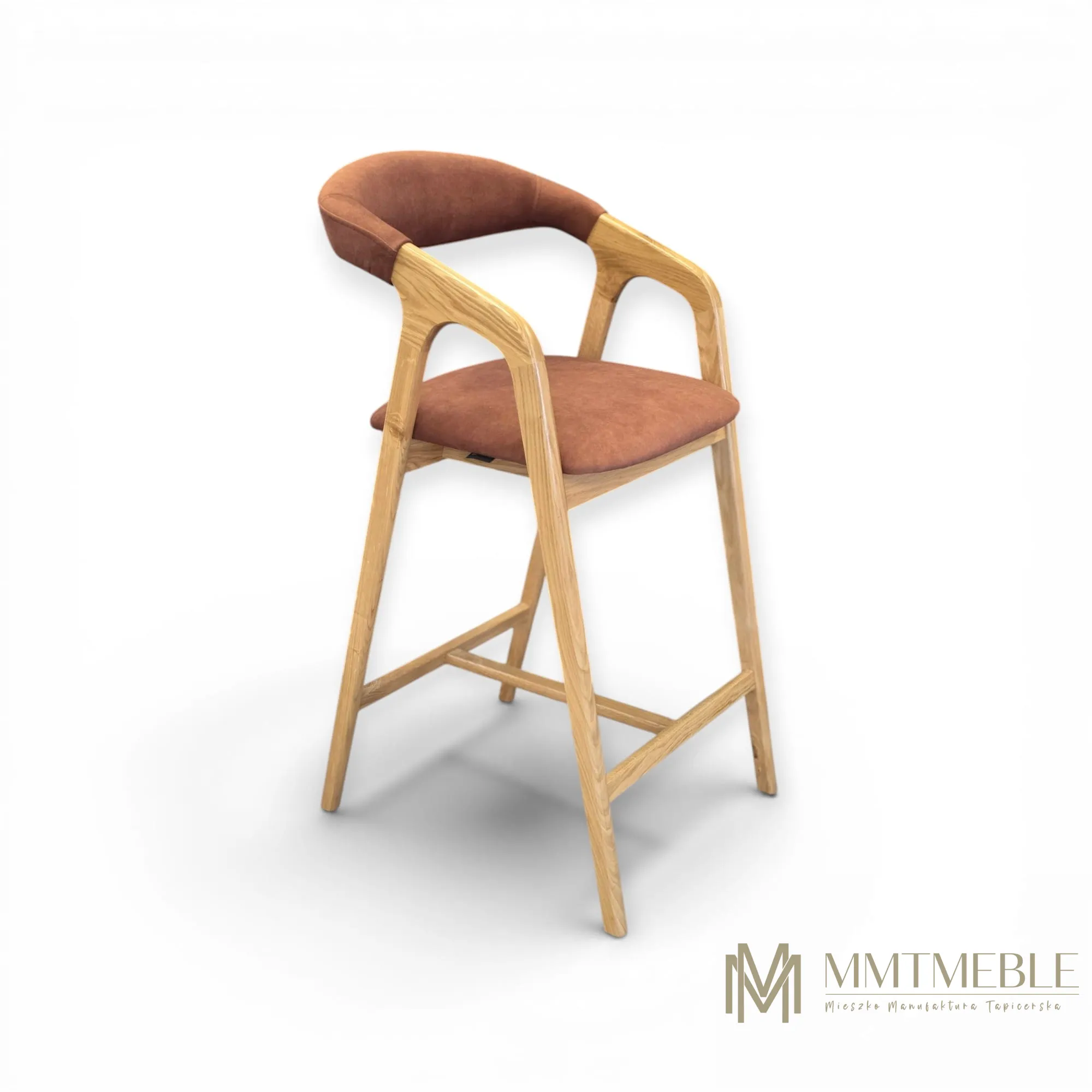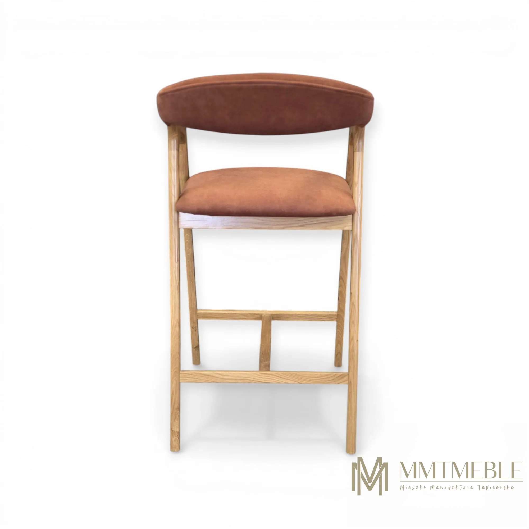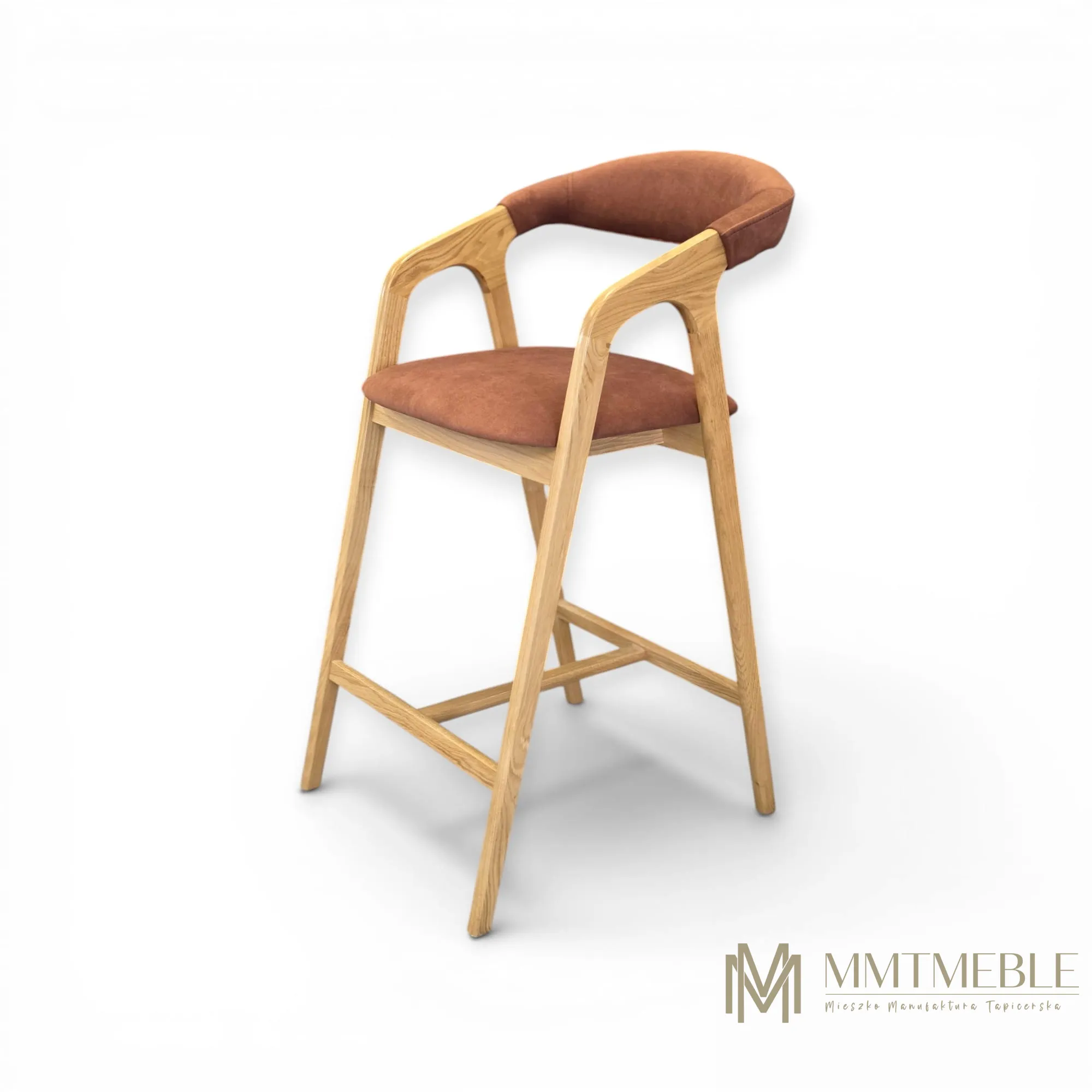 Elegancki hoker Vera to połączenie naturalnego drewna dębowego i komfortowej tapicerki. Idealny do wyspy kuchennej lub baru – wygodny, stabilny i wykonywany na indywidualne zamówienie.
